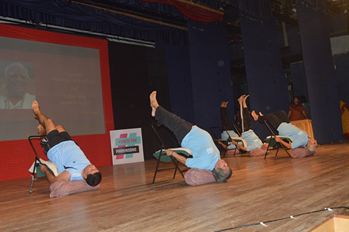 World Parkinson’s Day celebrated on 9th April 2018 at Veer Savarkar Rashtriya Smarak, Mumbai was attended by approximately 500 patients, caregivers, well wishers, donors and benefectors . People with Parkinson’s performed live showcasing their talents in a two hour event called ‘PDMDS has talent: You can do it!’ – depicting the myriad of talent present in them. People with Parkinson’s performed various items on the stage ranging from dances, singing, playing instrument to painting despite various physical challenges faced by them. Some shook a leg uniquely with their walking sticks and walkers, some overcame their tremors and stiffness and wielded magical paint stroke live on stage some challenged their balance difficulties and catwalked on Bollywood songs. Tai chi and yoga performance was much appreciated.
