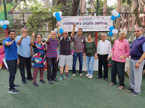 The PDMDS organized a Sports Carnival for PwPs and their caregivers where PwPs enthusiastically participated in various group games like passing the ball races, passing the hoop, throwing a ball through the hoop, buttoning a shirt relay, and many more. The winners were declared, prizes and medals were distributed, and the evening ended with a Unity Walk for Parkinson’s by all present.